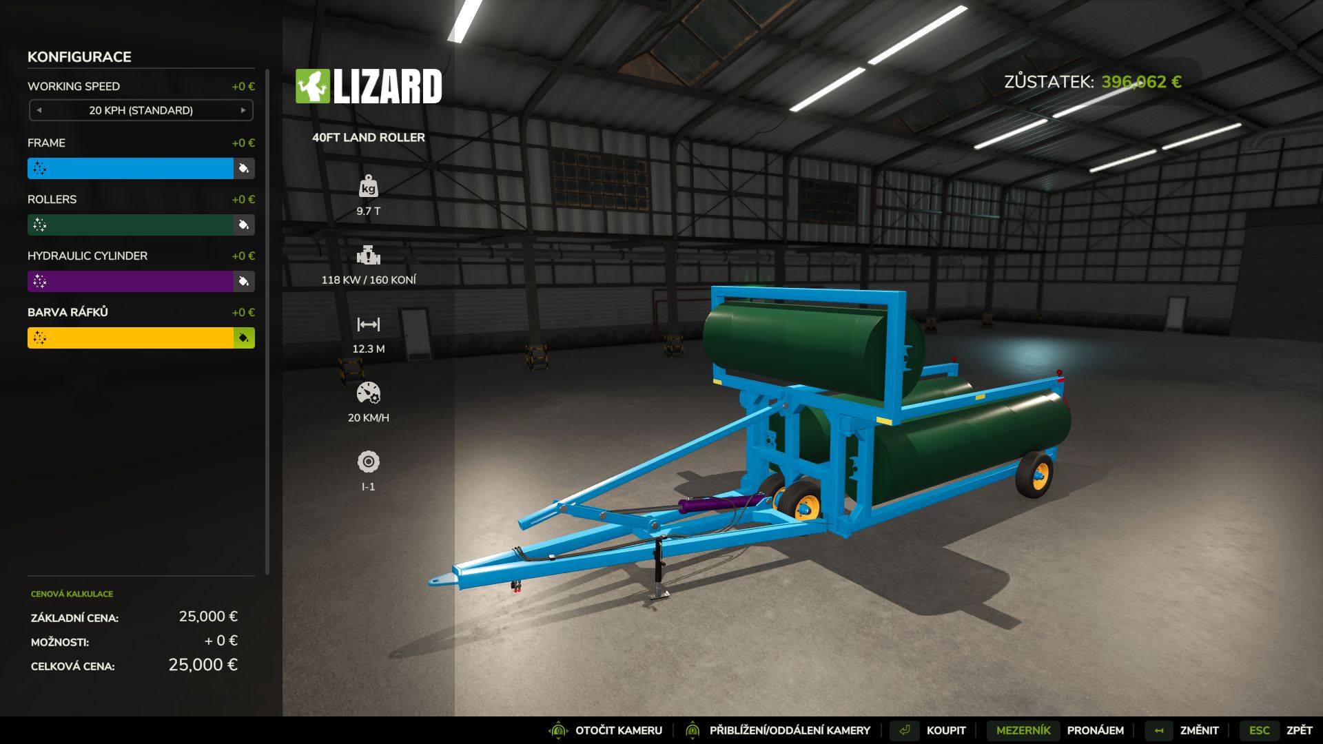 Option to paint individual parts: frame, roller, and hydraulic piston rod.