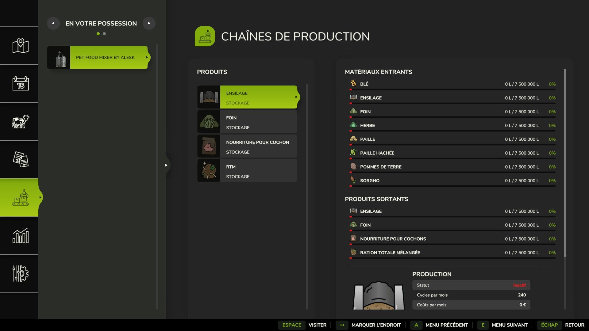 – Store 7,500,000l of wheat, silage, hay, grass, straw, minced straw, potato, sorghum, pig for pig and total mixed ration.