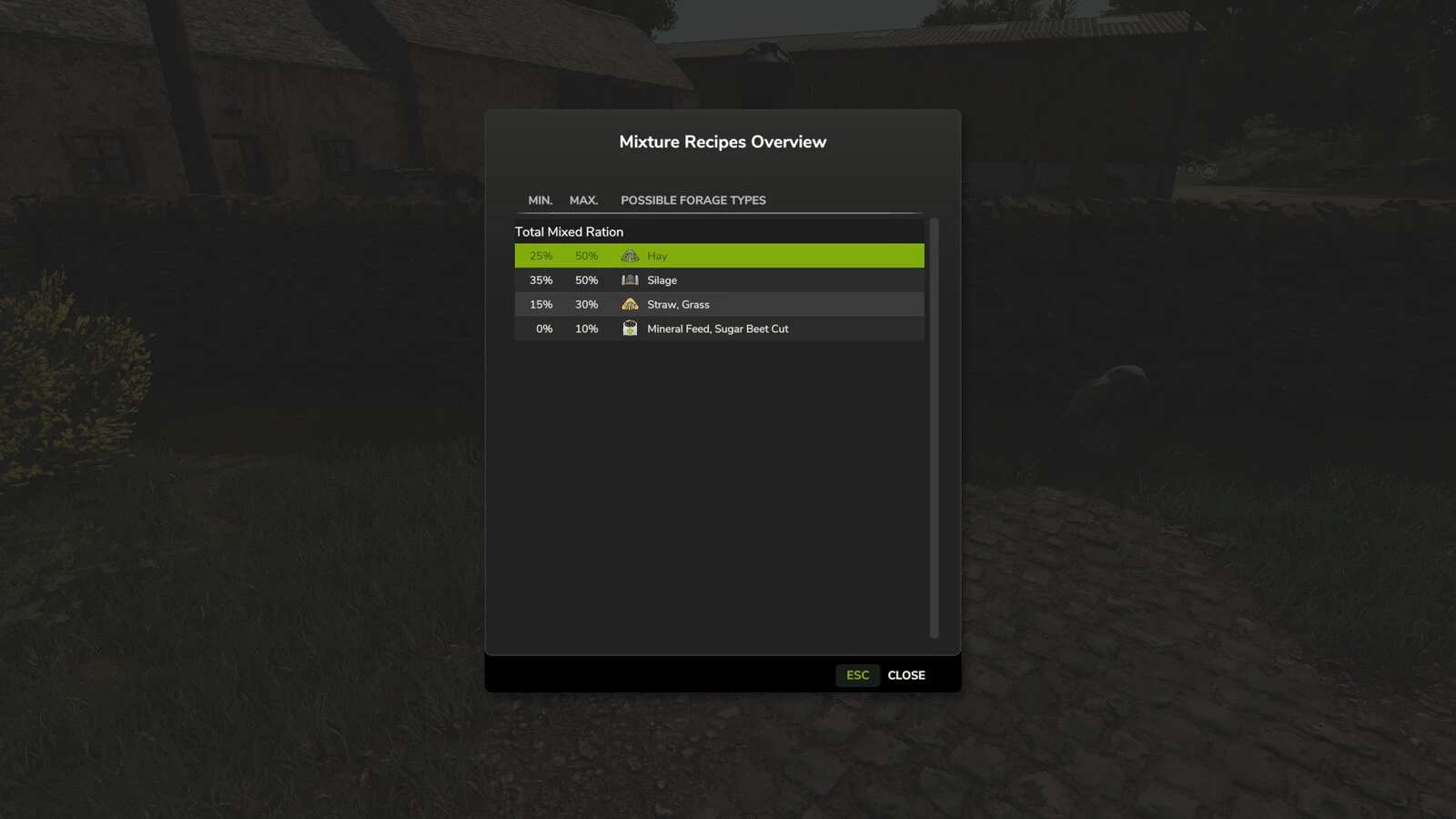 Food and Production quantity numbers (inputs and outputs in liters) are base game values and modification IS NOT possible with this mod!