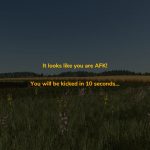 To ensure a good gaming experience, this mod will be disabled for hosts of multiplayer games. Similarly, this mod will be disabled in single player games too. As such, “Protected by Anti-AFK” will not be displayed for multiplayer hosts or single players.