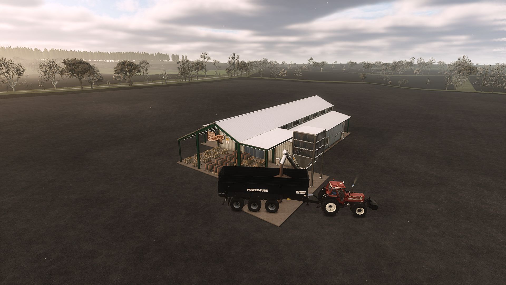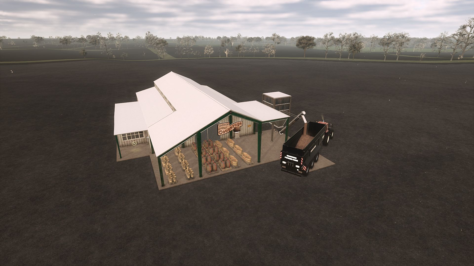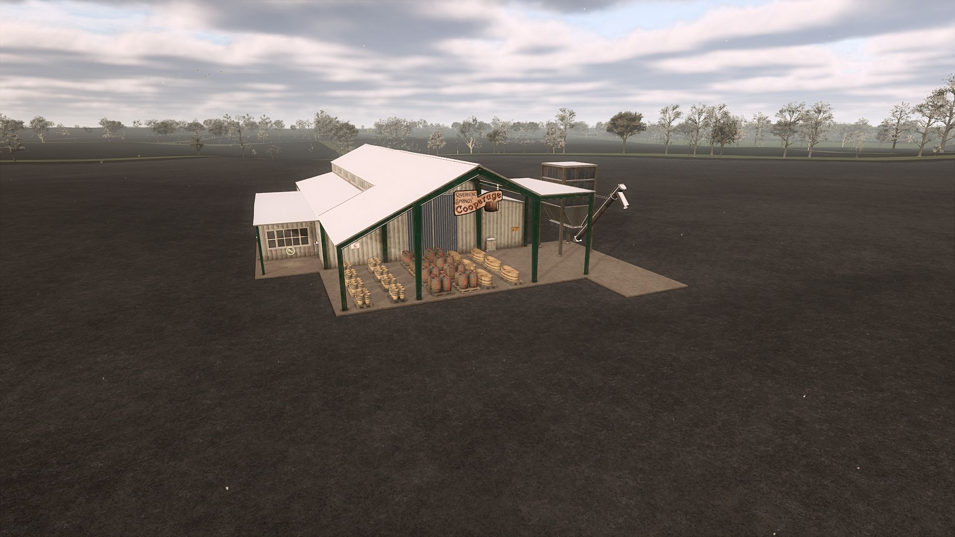 This improved Böttcherei offers an efficient and tidy wood processing experience. It has a wood chip silo and creates cleanly stacked output pallets instead of loose wood chips.