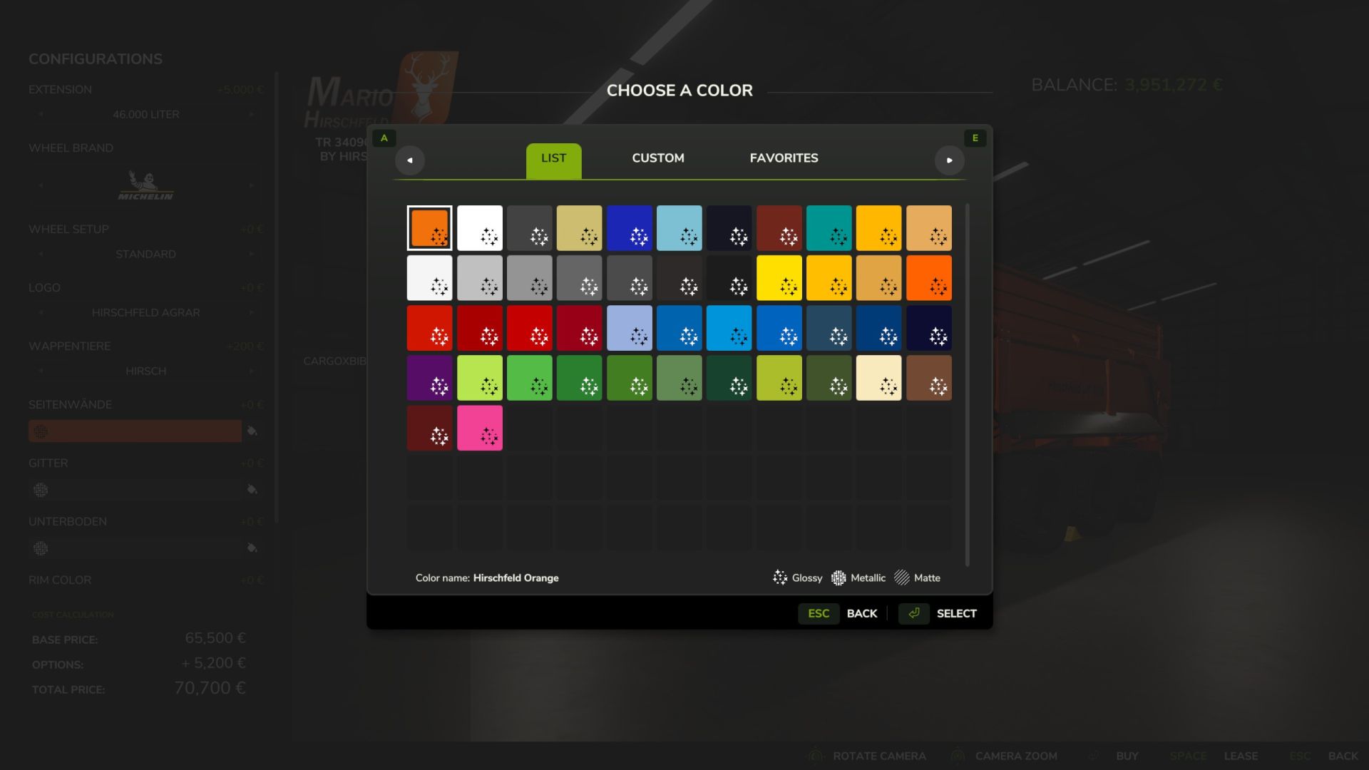 New freely selectable color options
