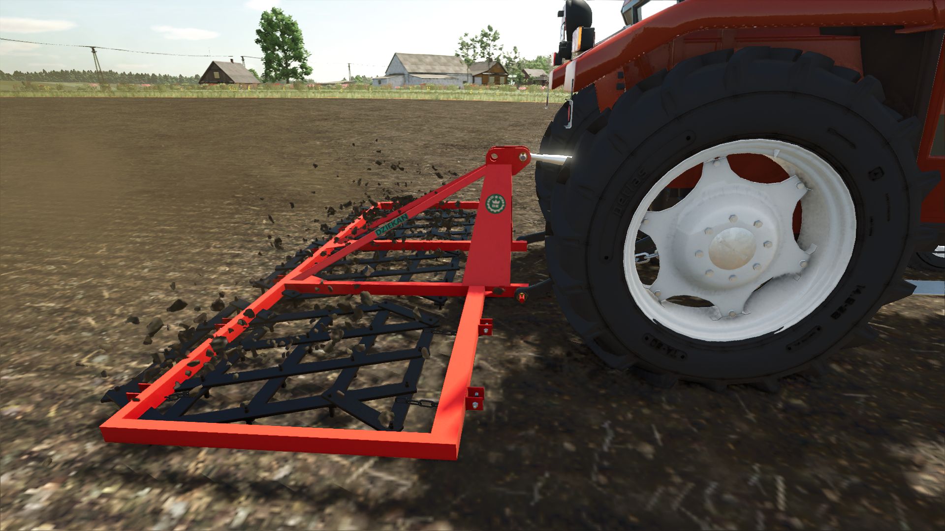 These are Polish 3-field medium harrows. They have a new model made by me. It is compatible with the More Realistic mod. It has 2 color configurations, 4 detail configurations and a tire weight configuration. In addition, it has an attachment animation and the fields of weapons move while driving.