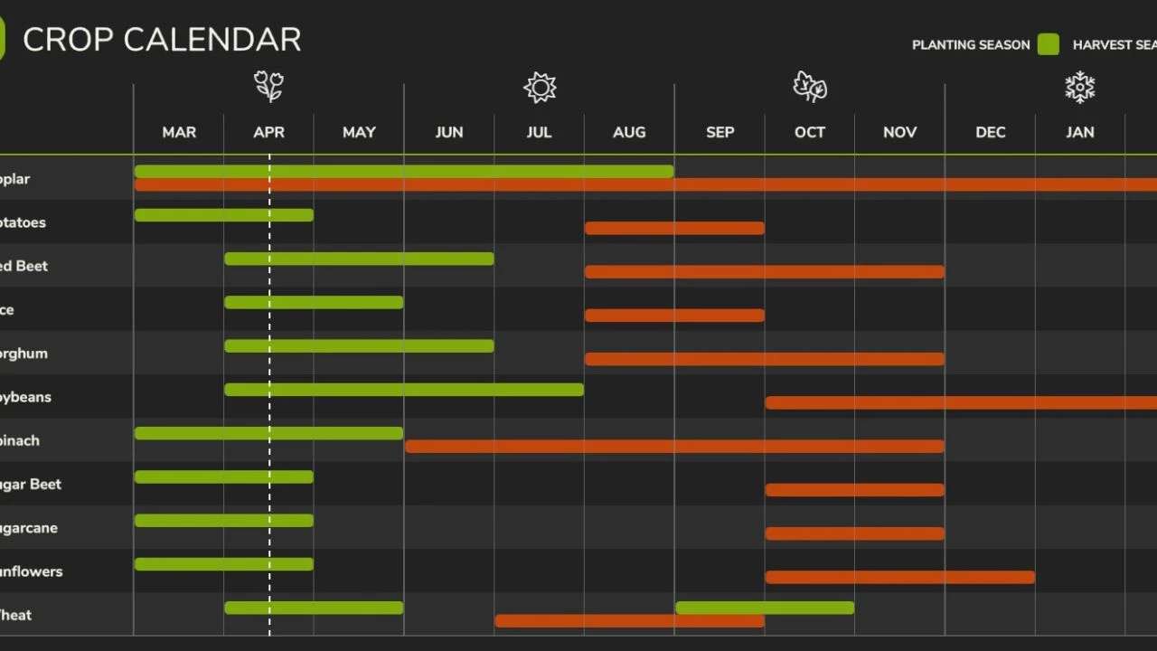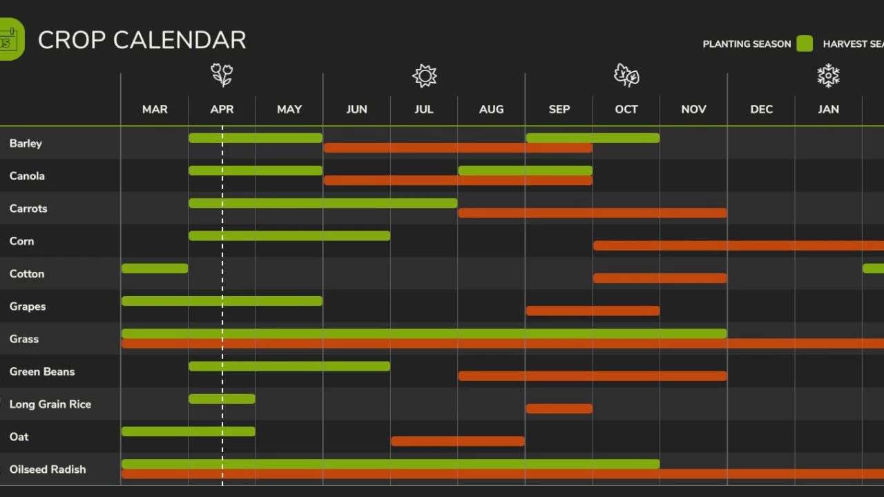 Custom crop calendar (geo) to match the upper midwest, in America.