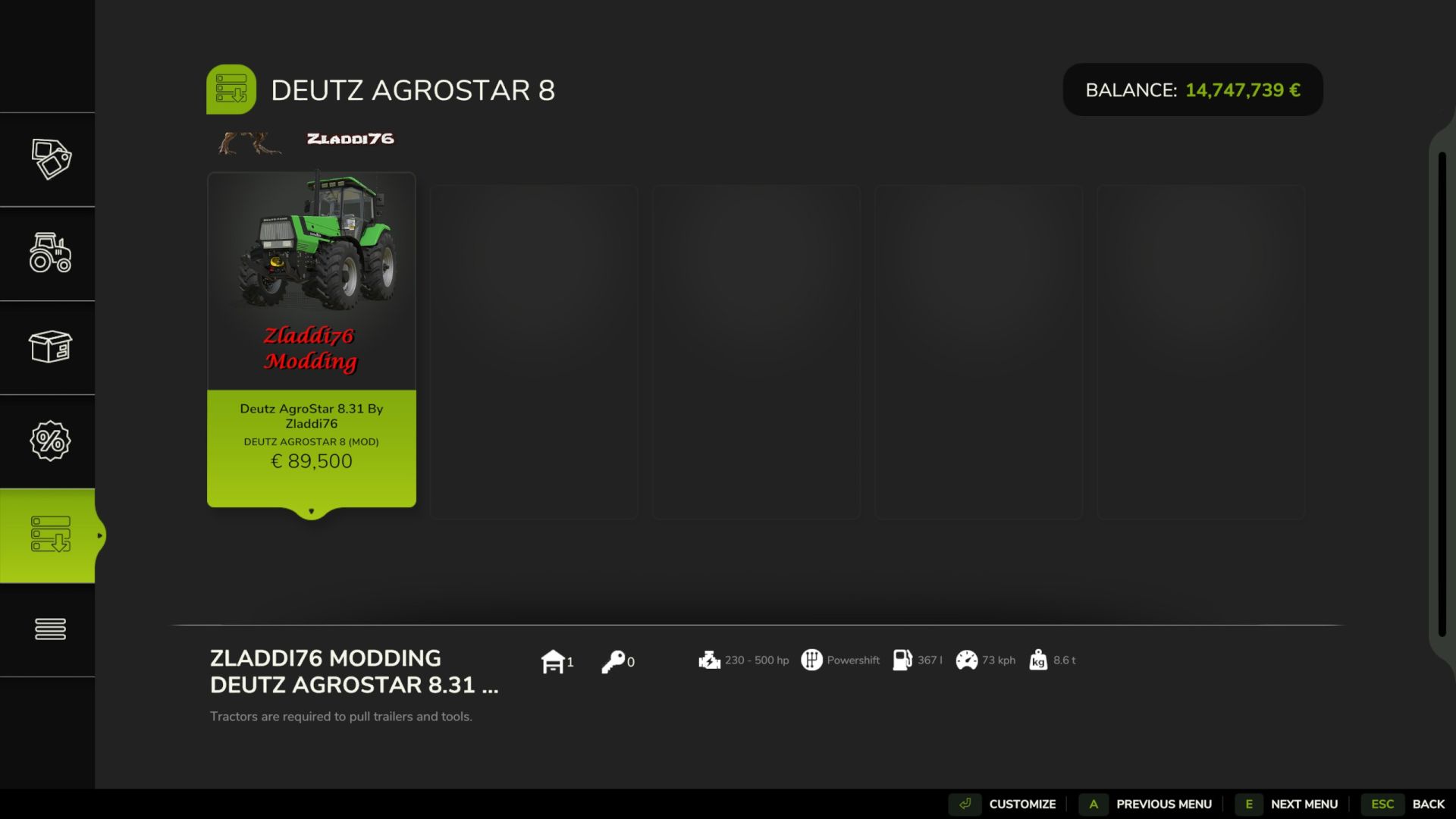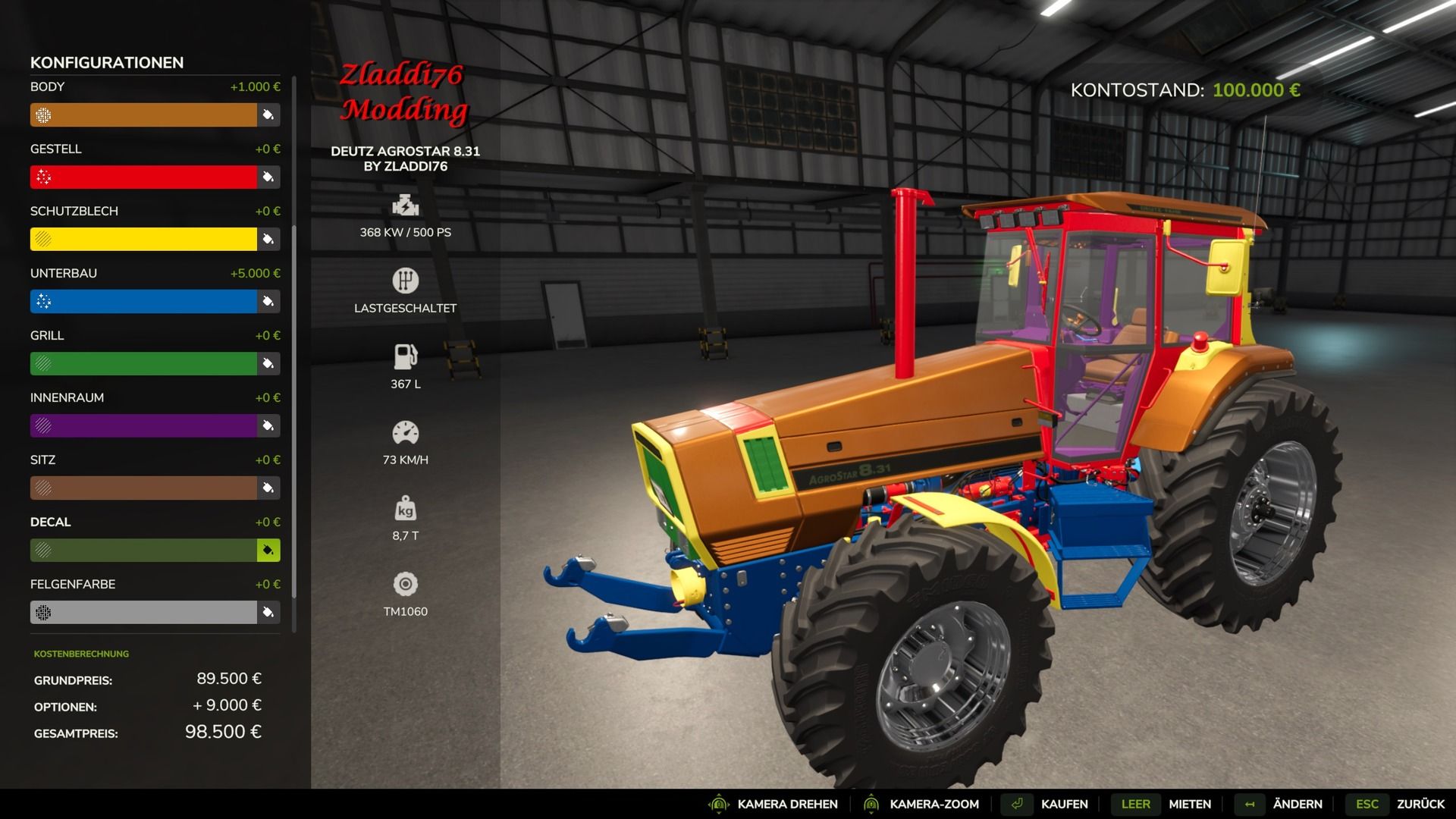 An old Deutz Agrostar 8 with a wide selection of color and the possibility of adding a way more powerful engine, that way, you can mix big farms with old equipment !