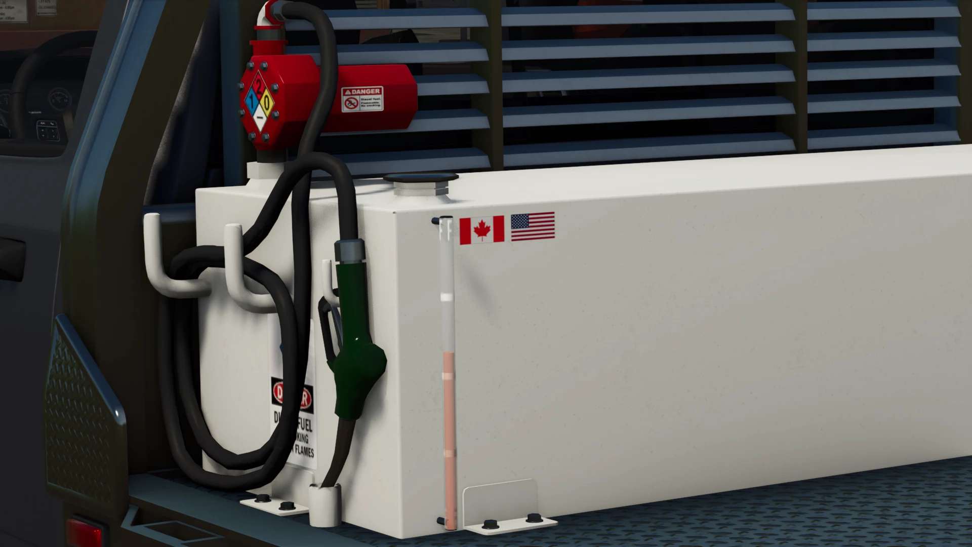 The truck can transport fuel and refuel equipment.