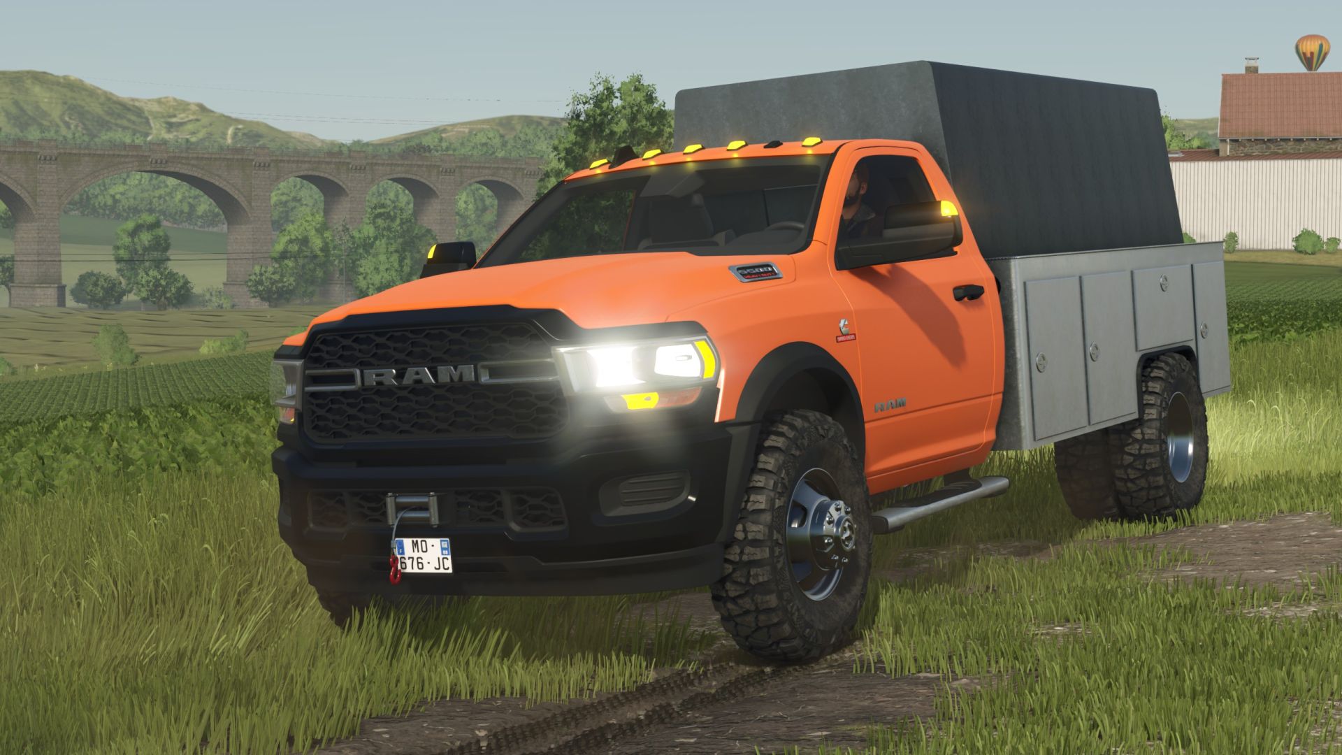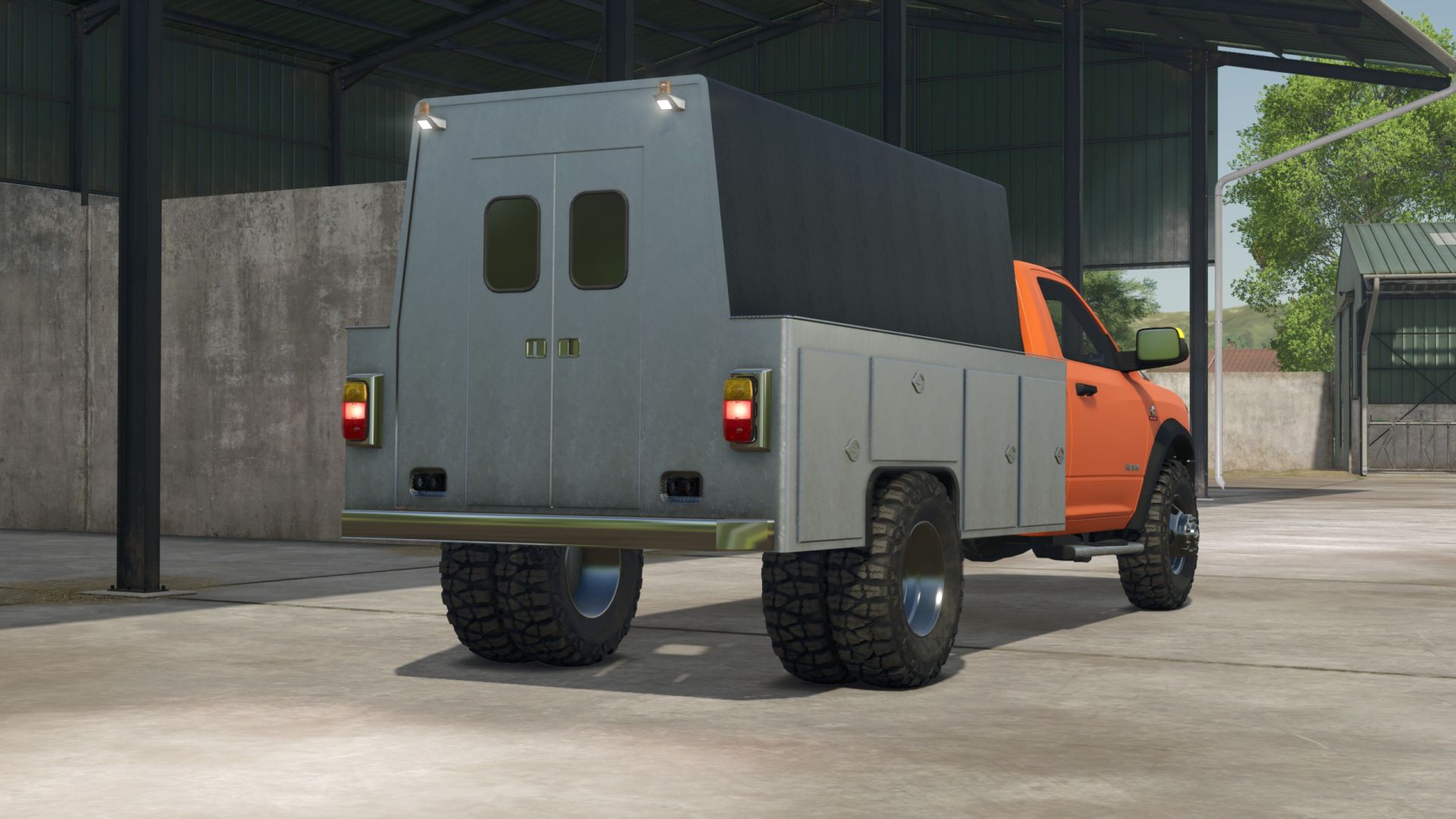 A Huge RAM 5500HD with a cage in the back, to carry animals… or unwilling employees