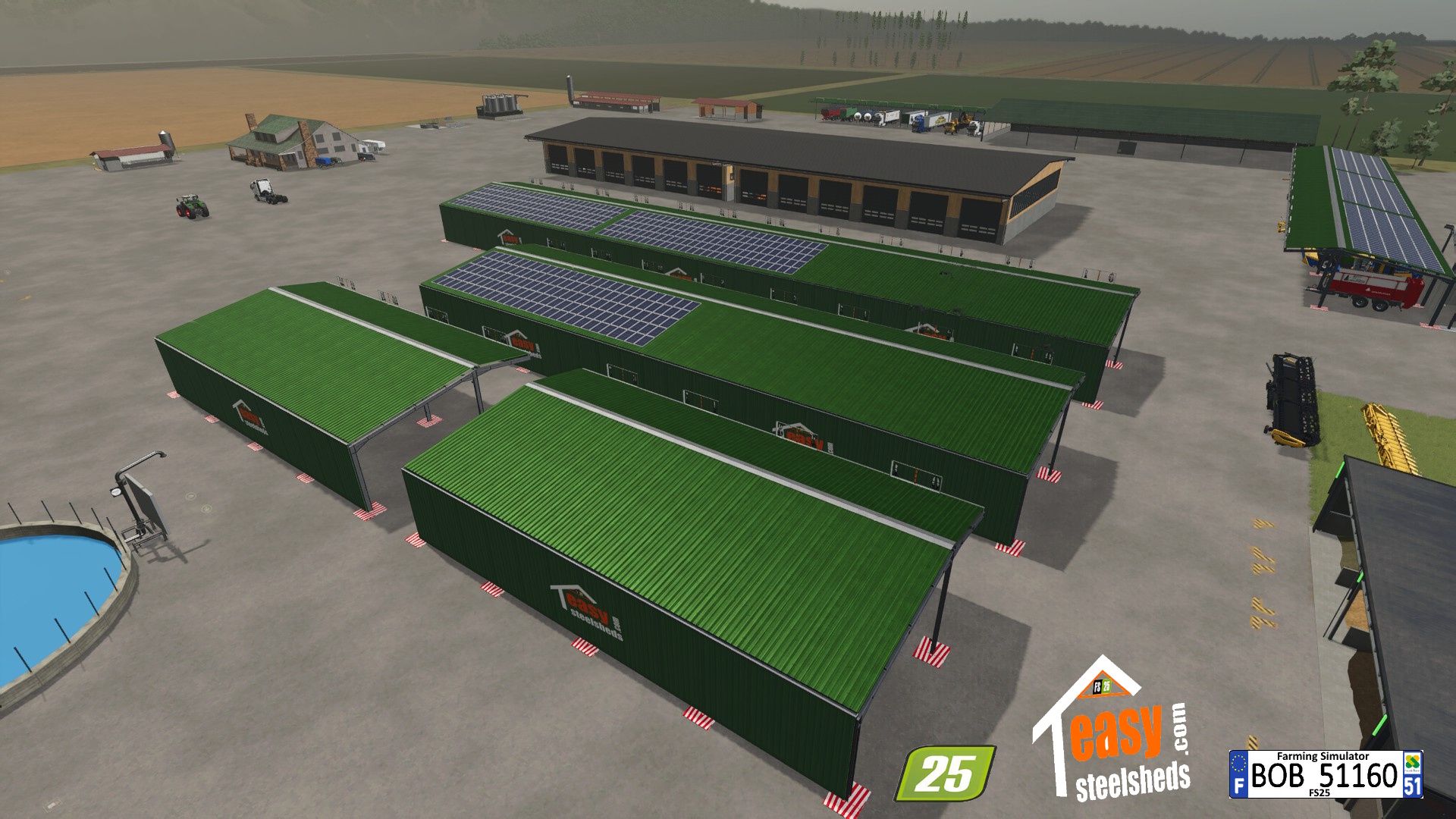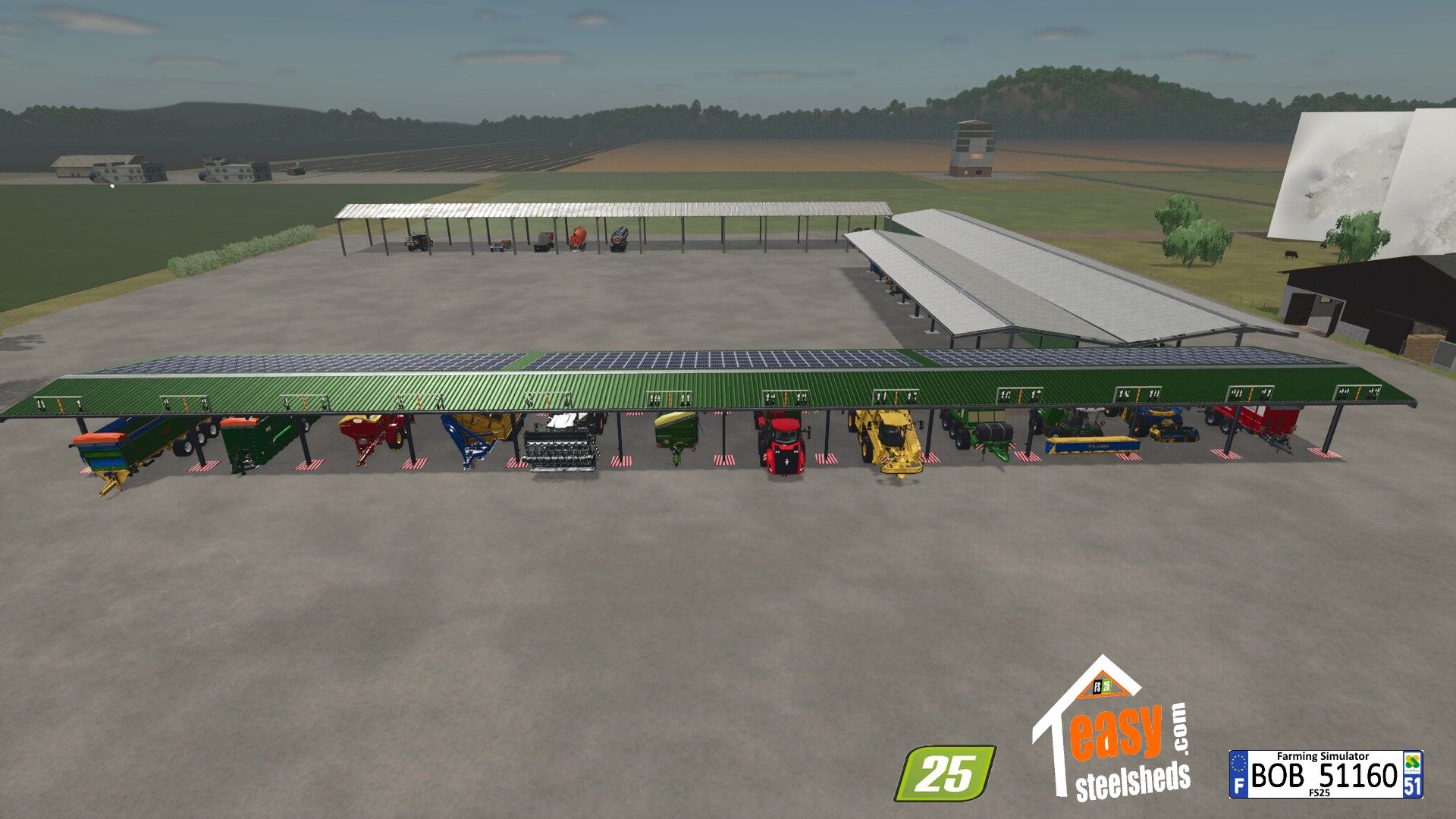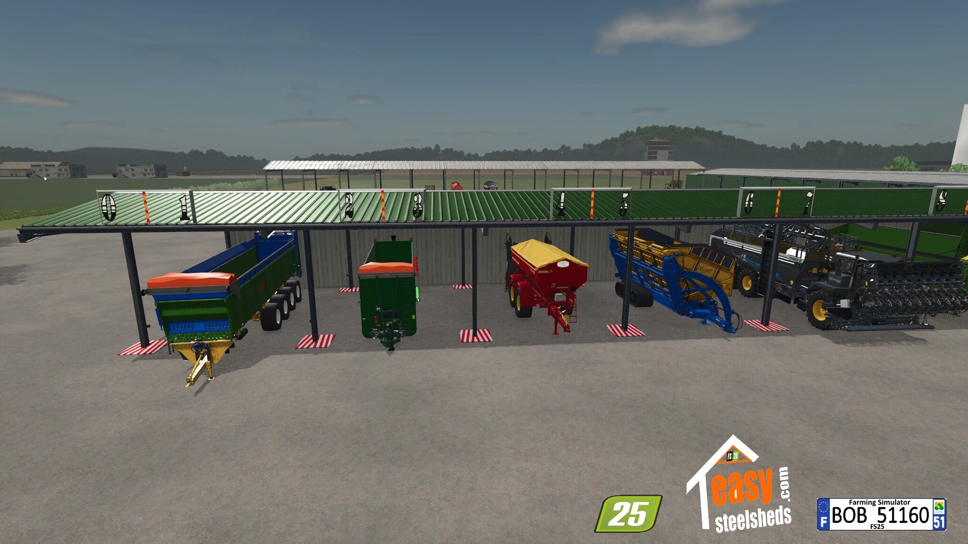 Hello everyone. Today I present to you the Easy Shed mods, I took my version of FS22 to redo it for FS25, with the possibility of placing 1 or 2 or 3 hangars they are numbering 0/7, 8/15, 16/23.: For more information see the attached photos. I wish you all a good game.