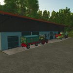 Directly behind it is the open machine hall. It has the ideal lenght for parking a tractor with a trailer.