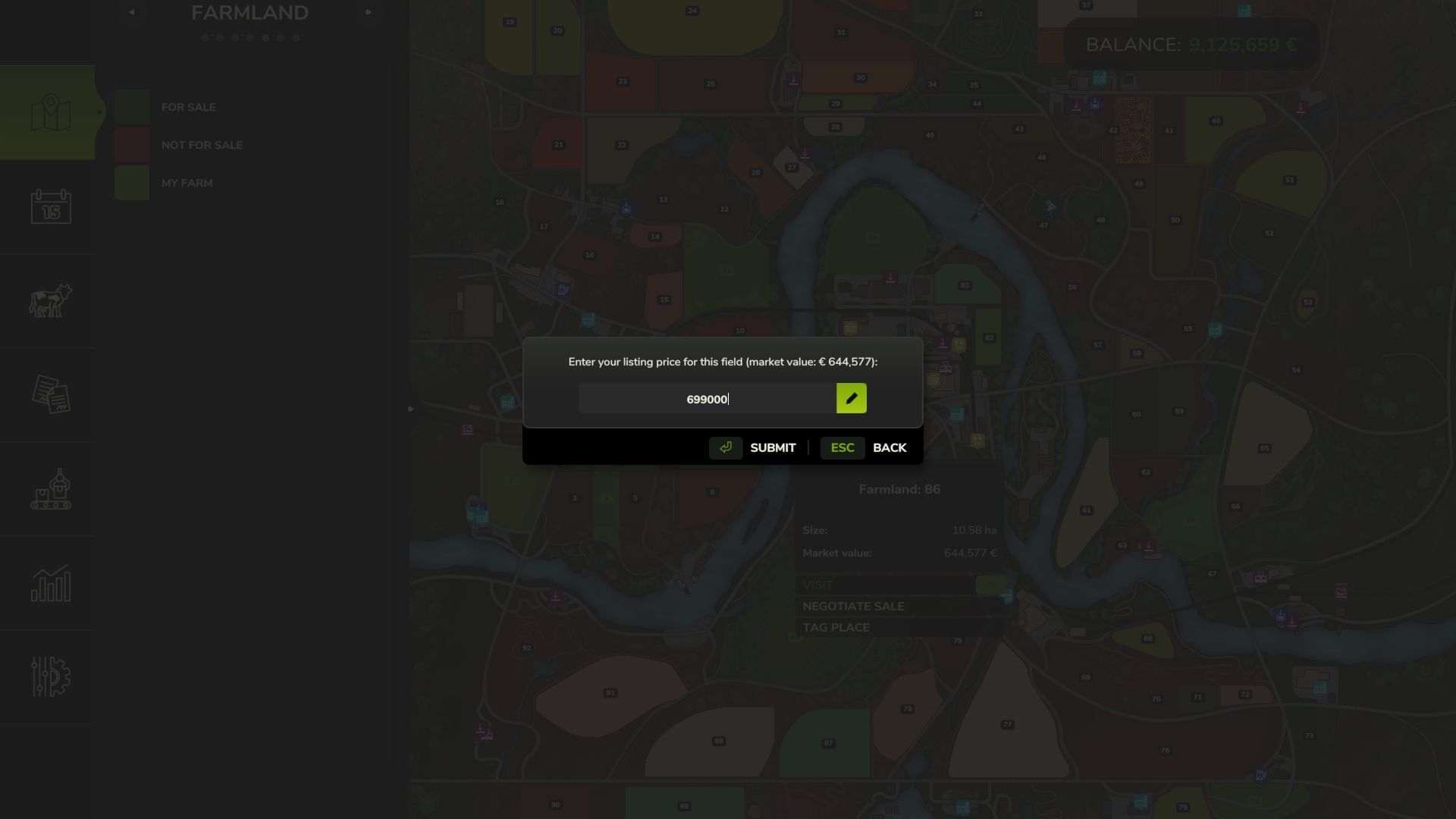 Makes farmland acquisition more realistic and strategic. Field prices reflect their actual crop value, and not all fields are always available for purchase.