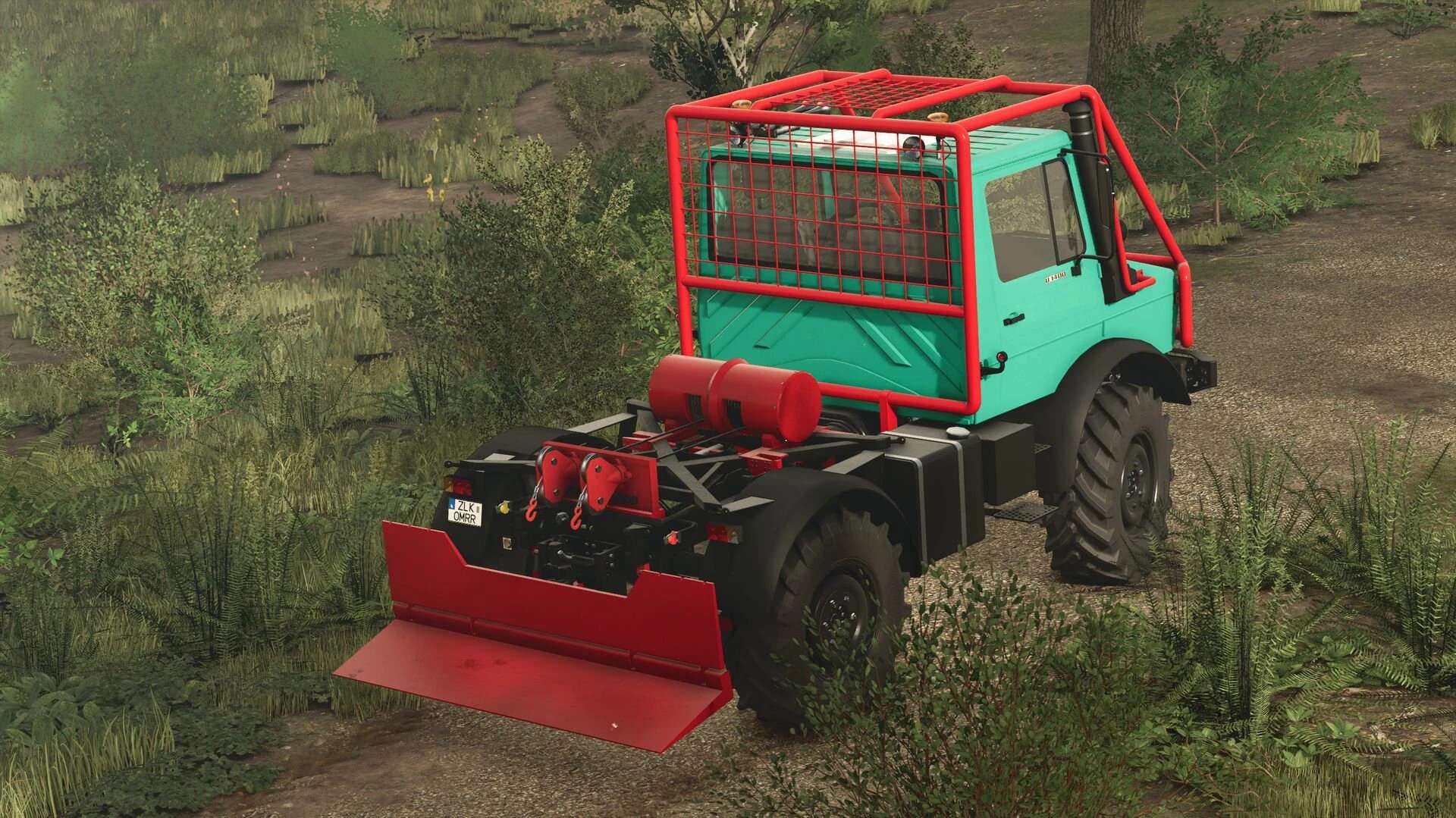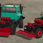 To connect the winch, configure the Unimog without a flatbed, drive under the winch, and connect it. Note: To install it on the larger Unimog, we recommend removing the rear hydraulics, otherwise it will be a bit tight. The mod is log-free.