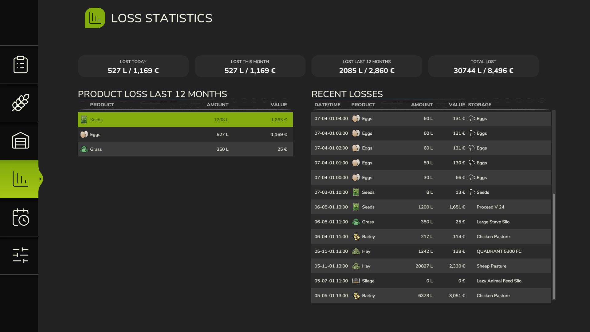 – Loss Statistics: track what you’ve lost and when