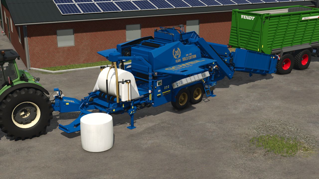 The GÖWEIL VARIO-Master – Gold Edition is a specially designed version of the well-known VARIO-Master baler-wrapper combination. This mod was created in reference to the anniversary model that Göweil presents for the 25-year company anniversary. Thanks to Göweil for providing reference material. The machine combines a variable baling chamber with an integrated wrapping system. This allows the production of bales in different diameters, which are then wrapped directly, ensuring a continuous and efficient workflow. The design is suitable for farming operations, contractors, and various industrial applications.
