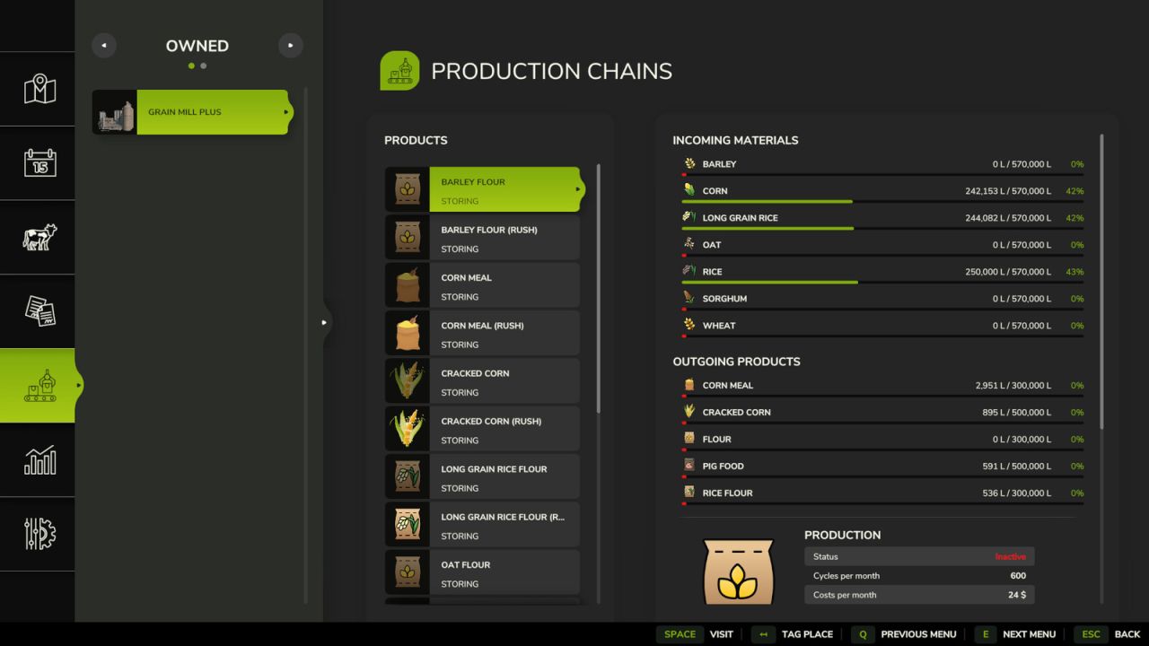 Barley Flour: 30L Barley – 23L Barley Flour and 3L Pig Food.