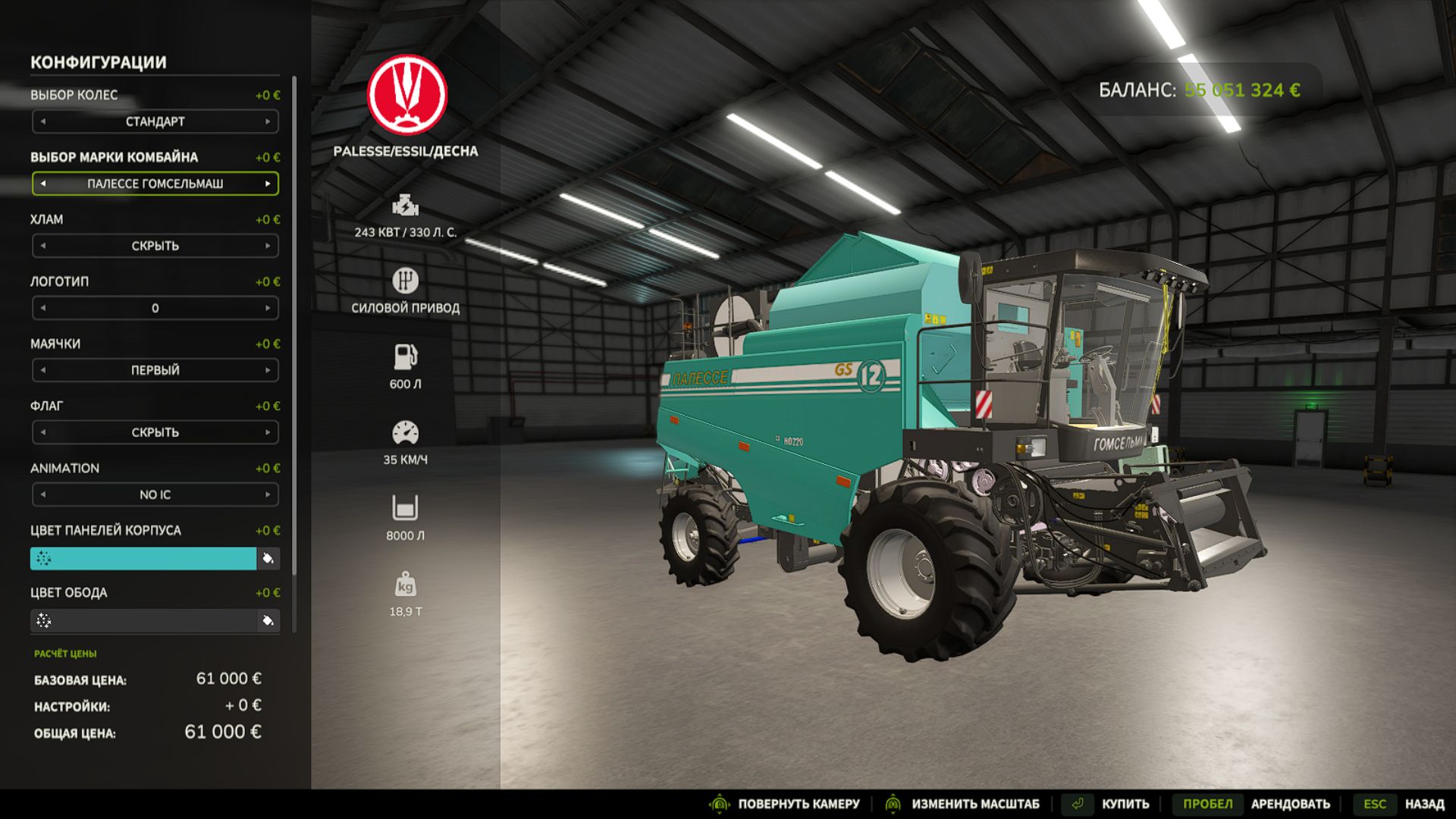 Grain tank volume: 9,500 liters;