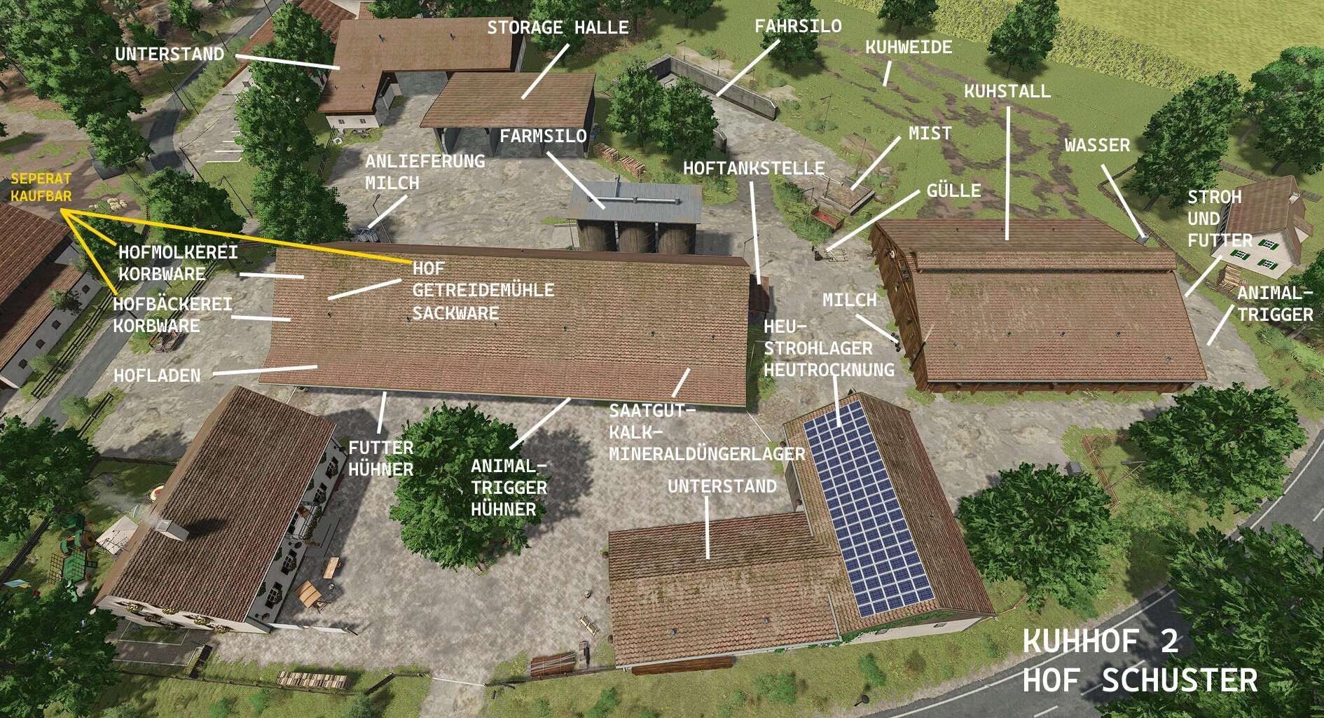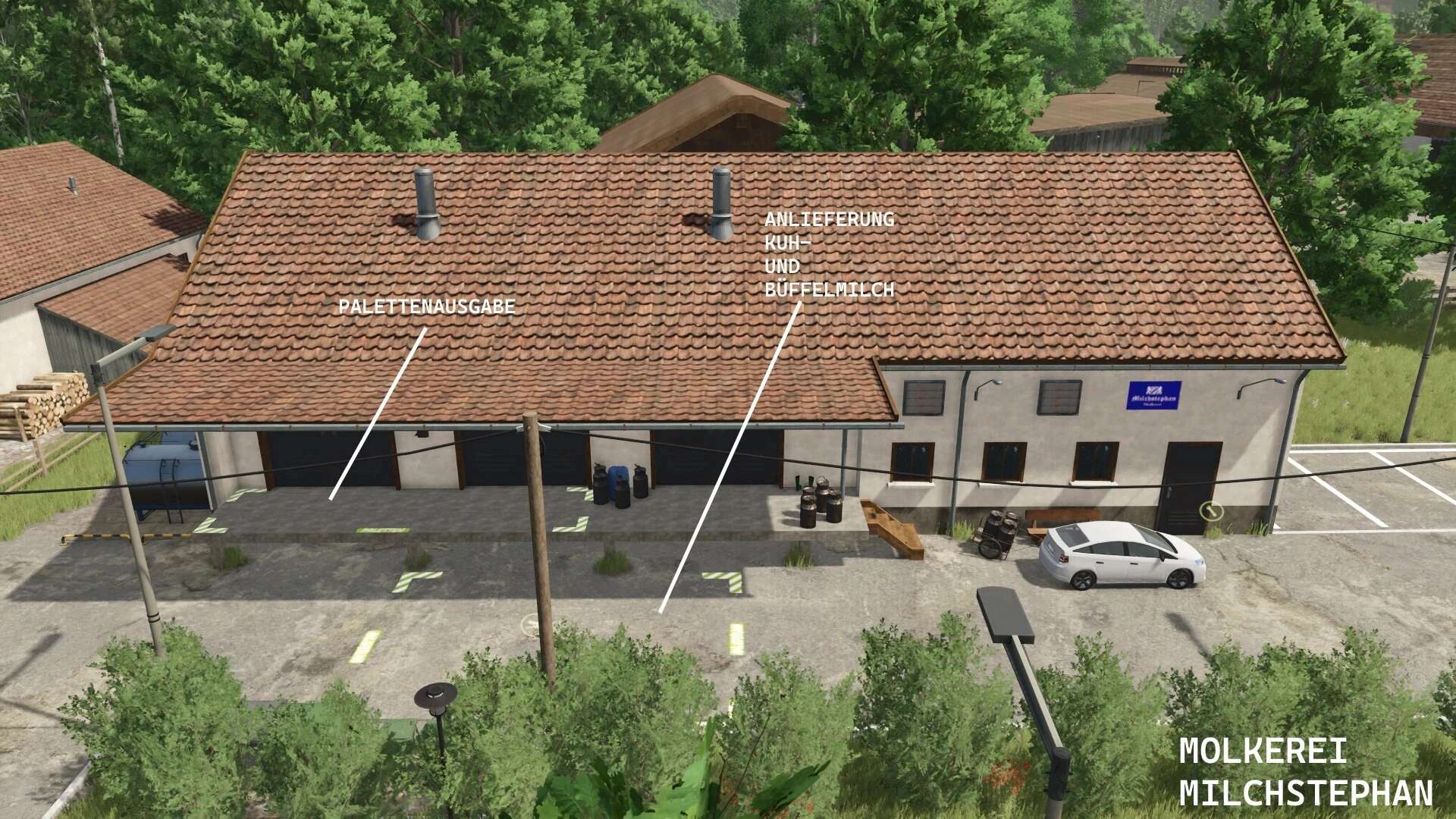 On the agricultural dealer’s grounds, there are also greenhouses and silos for selling goods, where you can buy lime, seeds, and fertilizer.