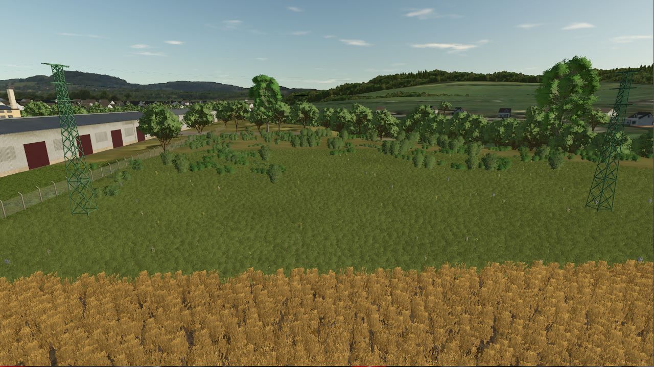 Deleted farm buildings to purify the + transformer and electric cables deleted area