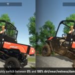 – Vehicle Dirt and Wetness combo button (single press toggles dirt on/off, long press toggles wetness on/off)