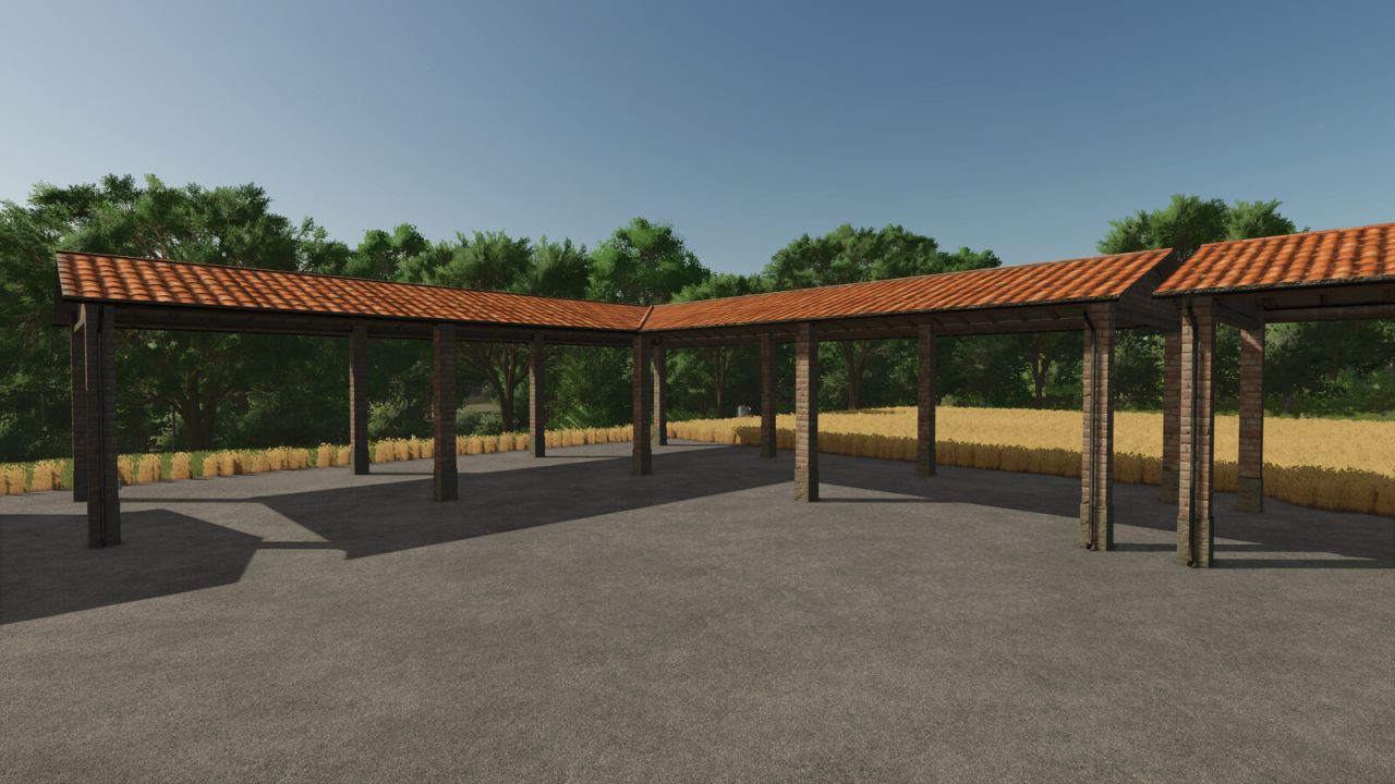 Agricultural sheds of various types, ideal for parking vehicles and tools, or for storing bales.