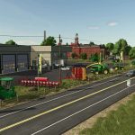 John Deere dealership with demo equipment for players to borrow.