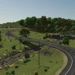 It features 2 towns, a vast train system connecting two of them, and a route that begins in the highlands, winds through dense forests, and descends into the valley, covering a significant portion of the map.