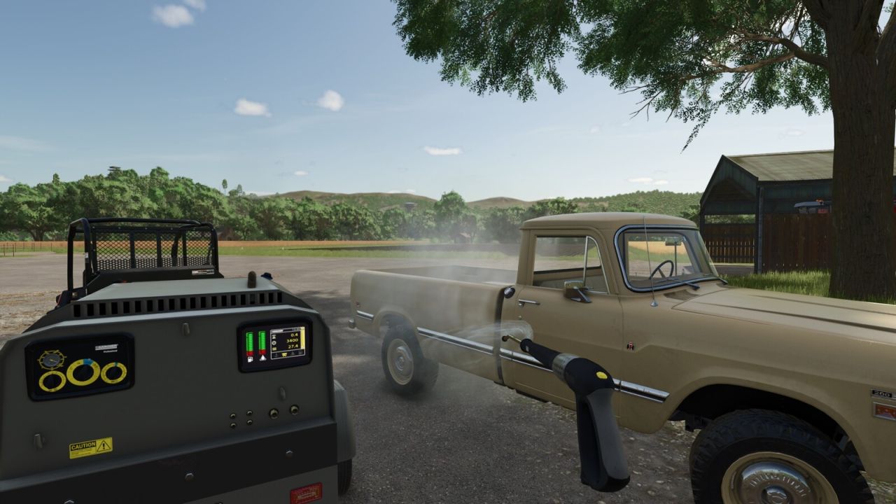 Due to crossplay limitations it is currently not possible for the pressure washer to show active animations or consume water and diesel when operating.