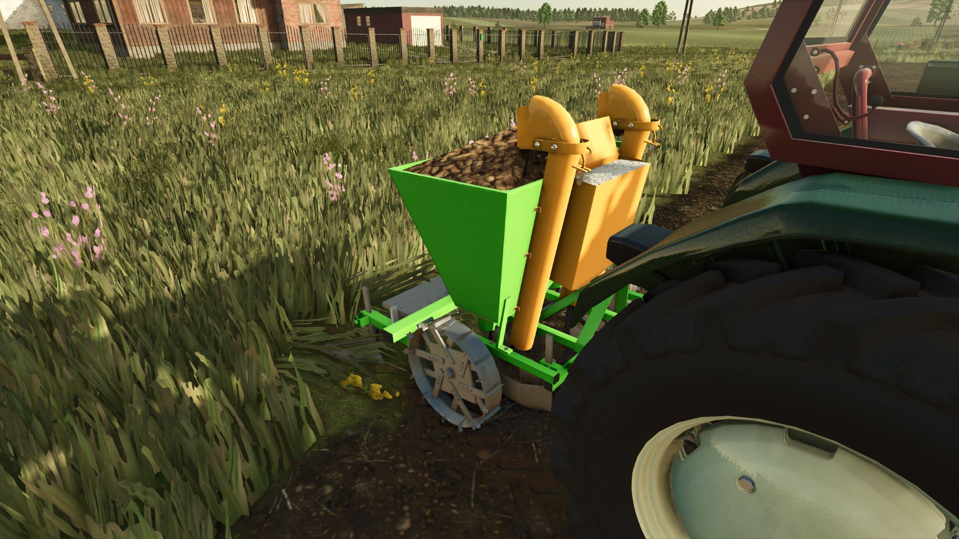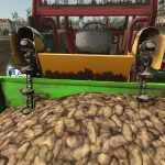 This is a conversion from FS22, although I added some of my own improvements. It has 6 color configurations, configuration of the model, platforms, fertilizer tank, stickers, and drive wheel settings. The modification also allows you to sit on the platform as a passenger (although the external camera has some imperfections). It has its own sounds. It has working animations of potato buckets and fertilizer dispenser drive. The planter does not need to be turned on to start it, just lower it. It is compatible with the More Realistic mod.