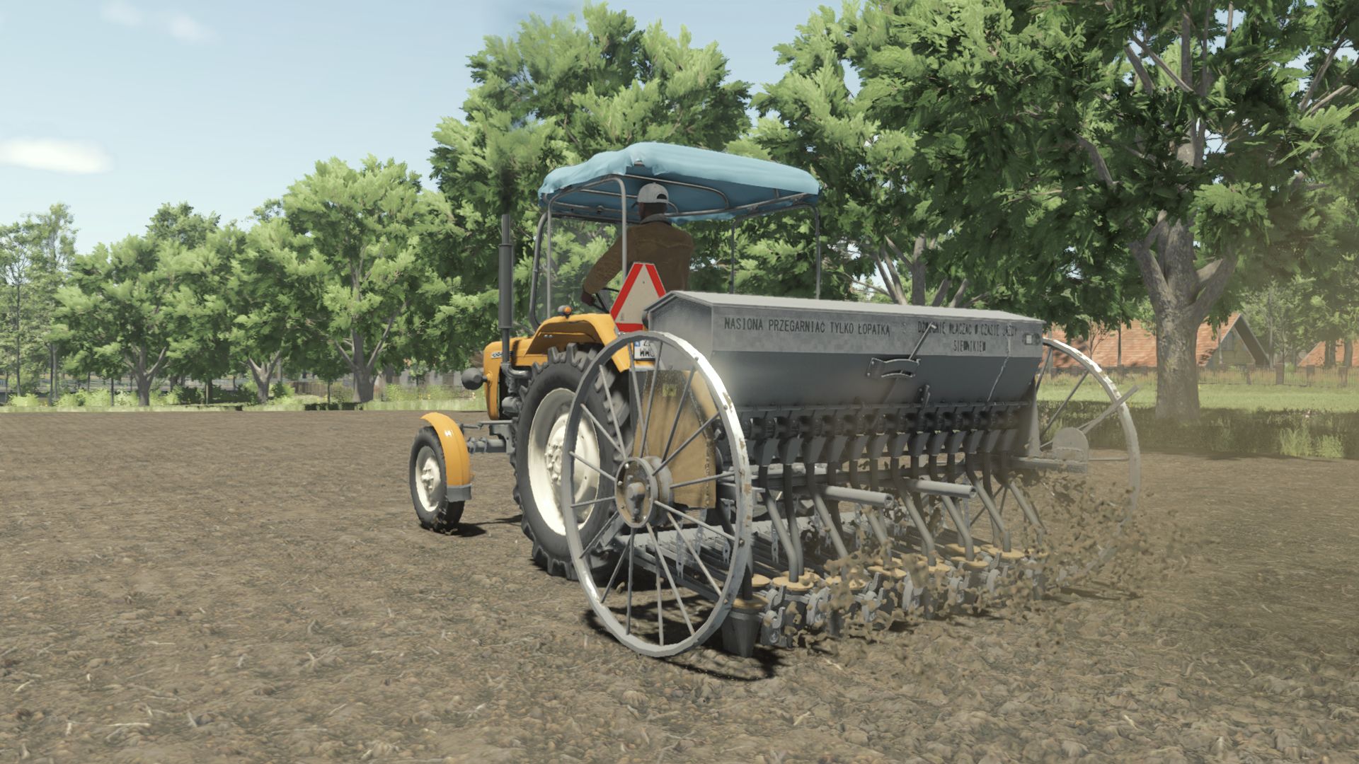 Old Polish horse-drawn seeder converted to 3-point hitch.