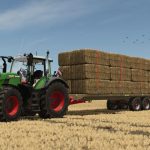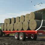 The 100d16 semi-mounted bale trailer, 10m long and equipped with hydraulic brakes, is ideal for carrying round or square balls from the field to the farm.