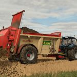 Manure or compost spreader with a capacity of 16660 liters or 18860 liters with extensions.