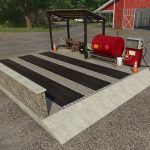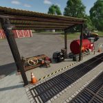 Car wash bay with gas station and workshop.