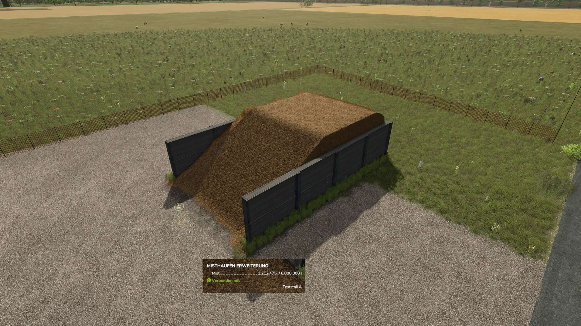 Manure heap expansion with increased capacity (6 million), increased recharge speed, and a recharge trigger available on all sides of the manure heap, supporting tall trailers. Upon construction, the manure heap changes the ground texture and receives a decorative grass strip around the perimeter. When emptying the manure heap, there’s no longer a strip of manure left at the entrance.