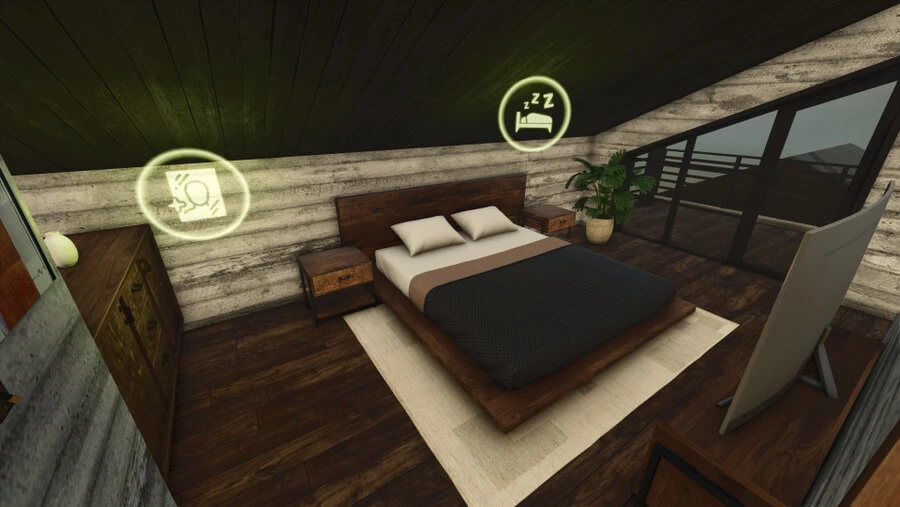 – an upstairs bedroom with a sleep trigger and a walk-in closet (the bedroom has a balcony with activated lighting),