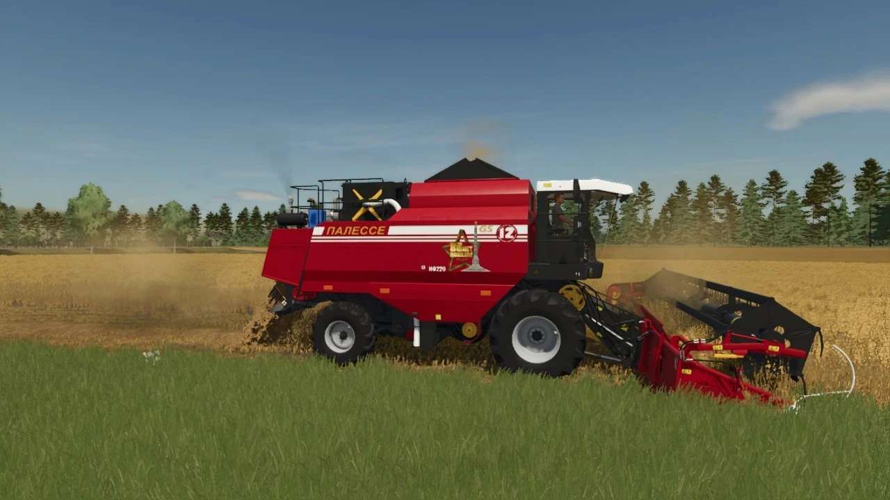 Updated the Palesse GS12 2008 combine harvester. For Victory Day, the Belarusian machine acquired an anniversary logo.
