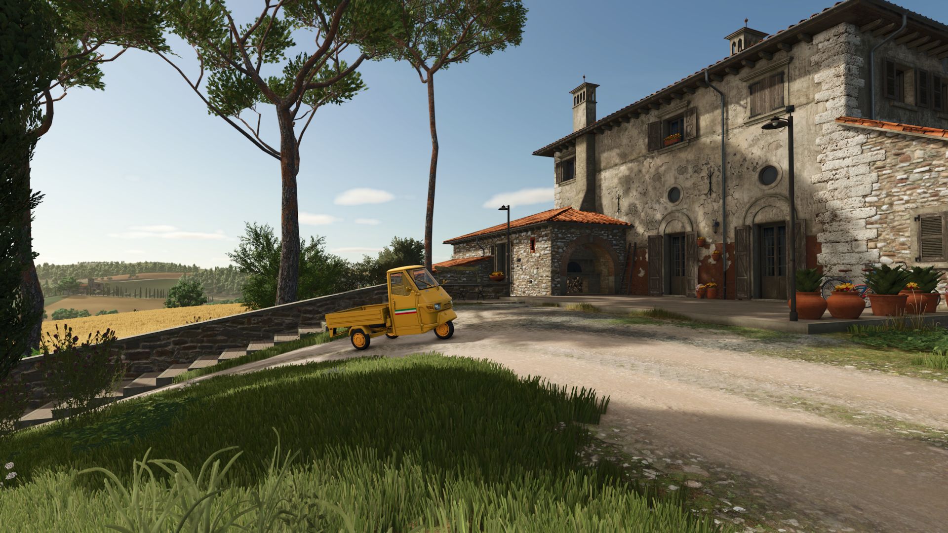 Ape50 completely yellow, perfect for Italian countryside.