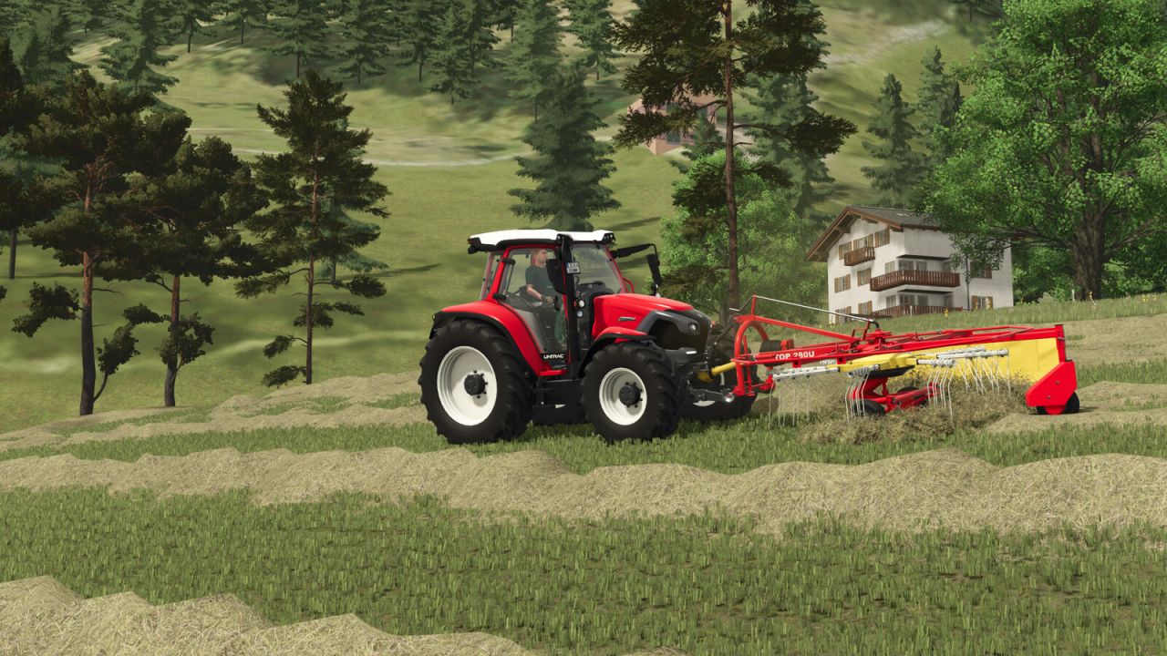 The Pöttinger EUROTOP 340 is a rear rake with a working width of 3,40 meters. It is designed for use in alpine regions. With only 400 kg it is a real lightweight for alpine agriculture.