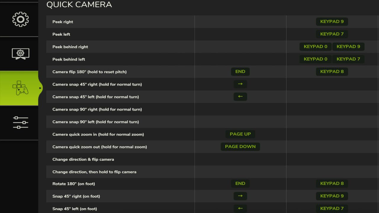 Then also rebind the control action keys for Quick Camera, in case they seem wrong for your style of play.