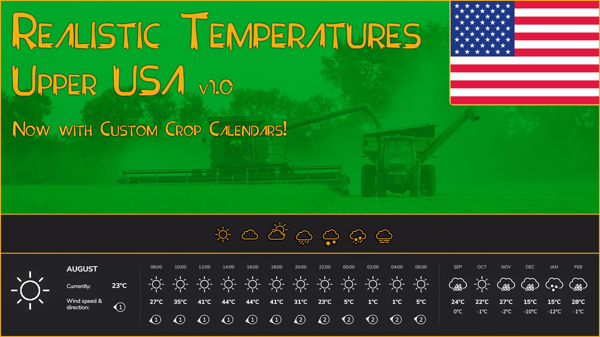 I bring you Realistic Temperatures – Upper USA, the update for the second of a series of scripts for FS25 that will allow for more realistic and varied temperatures depending on the region you are playing.