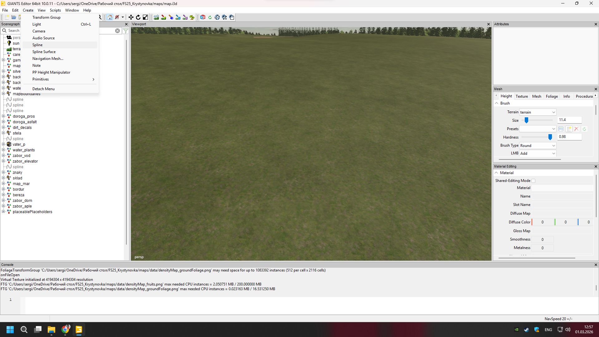 (Creating a river using a spline in Farming Simulator 25 via GIANTS Editor)