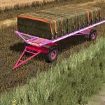 A little more colorful Romanian bale trailer. It takes somewhere around 3 round bales and 4 square bales