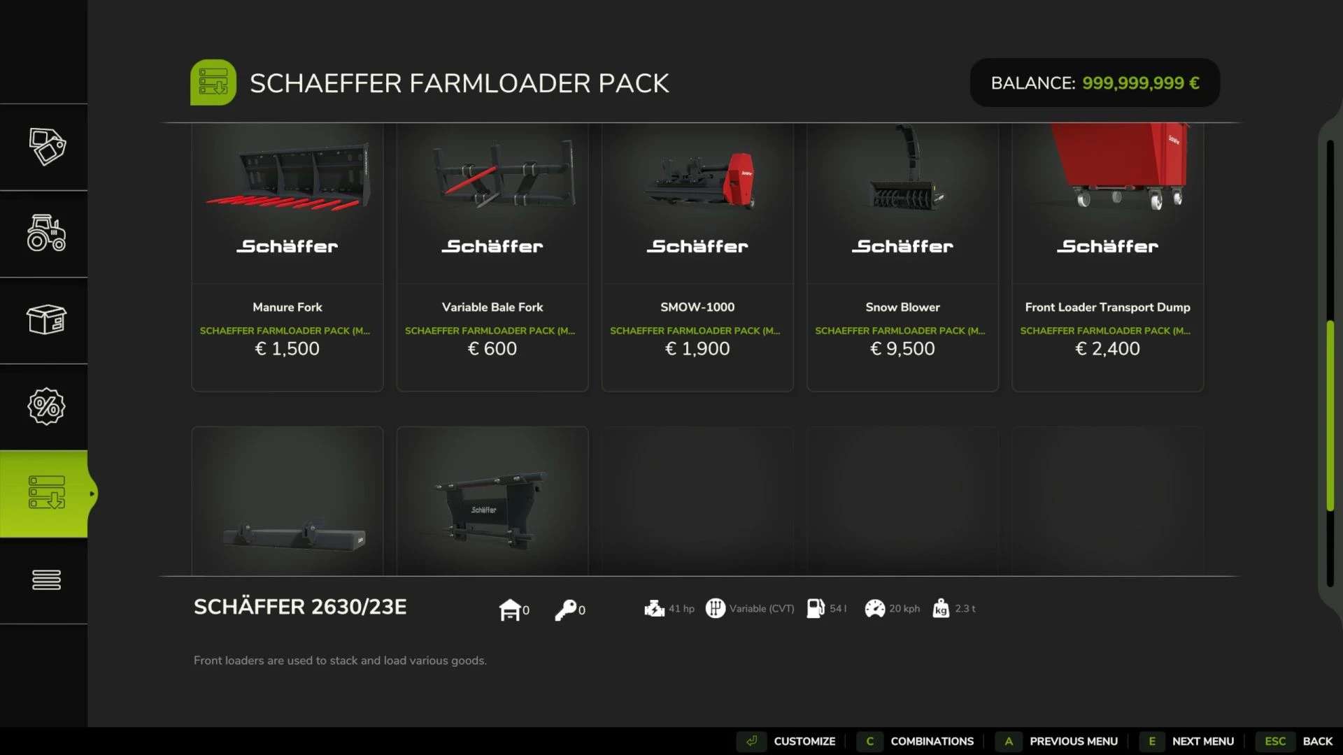 – Removed the restriction on the Schäffer transport skip; it can now be attached to a standard front loader
