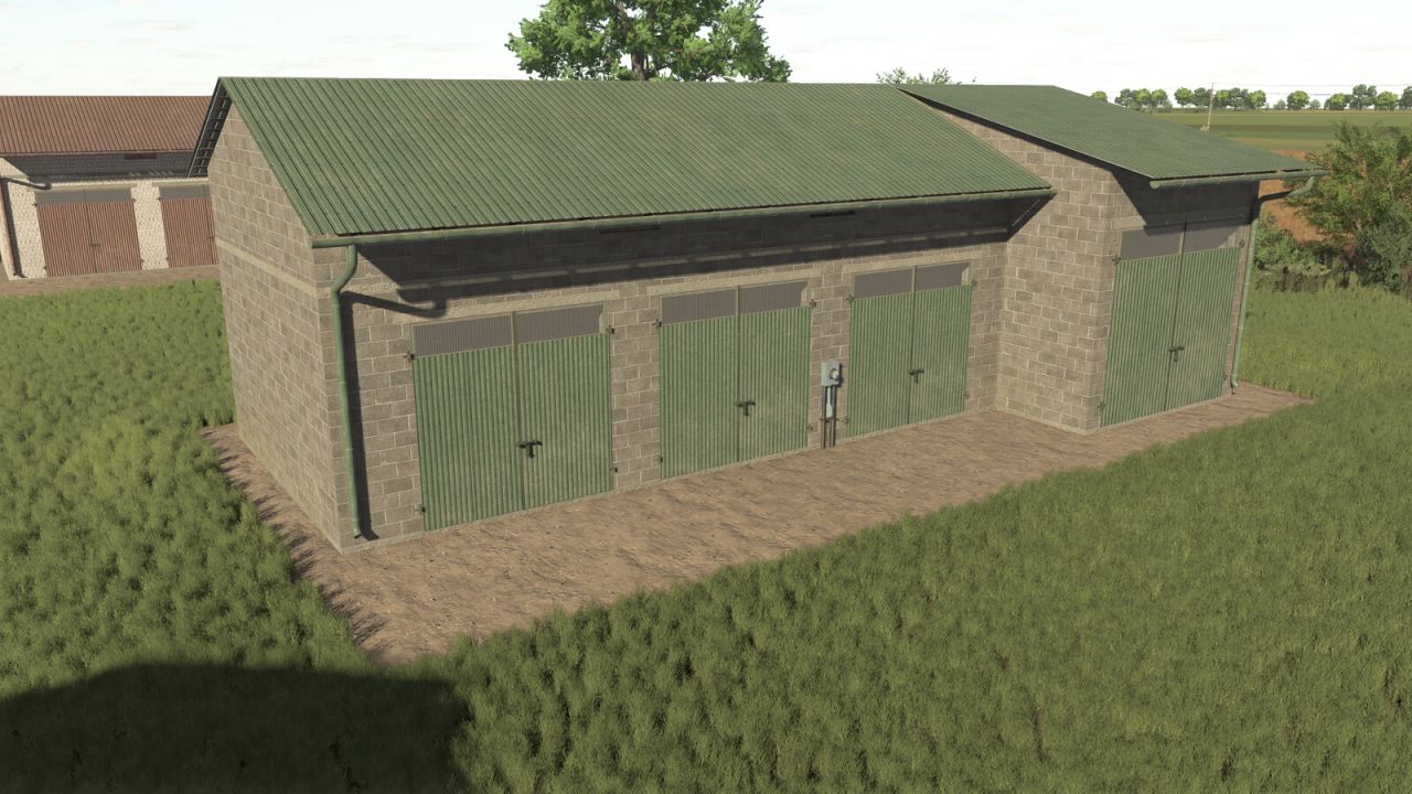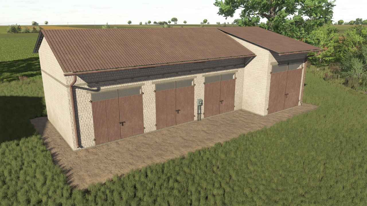 A Garage with a Silo where you can store machines and crops.