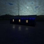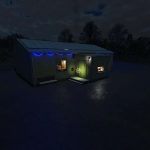 Small single-family home with sleeping function, Christmas lights and solar panel setup.