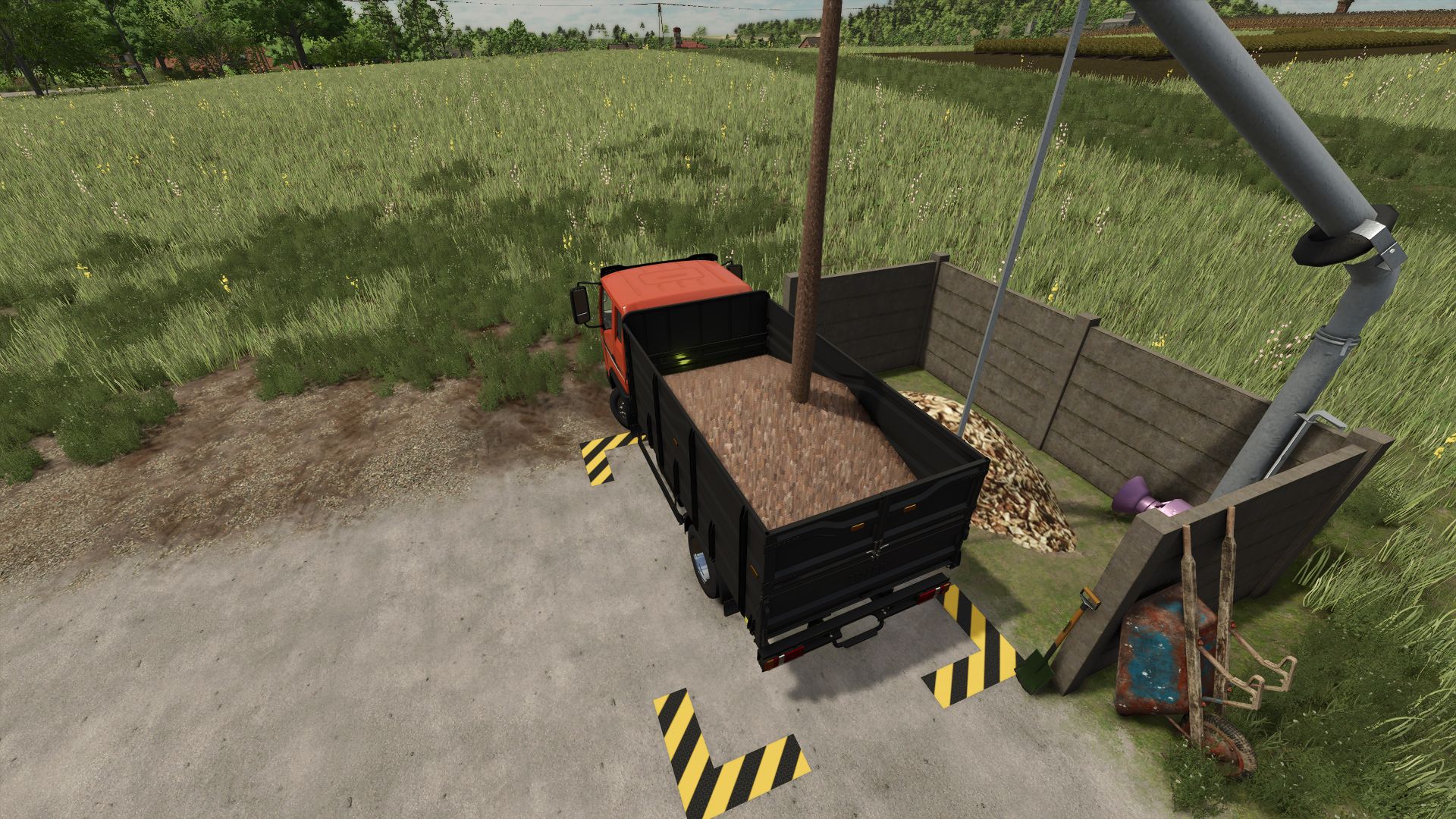 A small handmade silo to store stones and woodchips, so you can wait for the best price in a tidy manner.