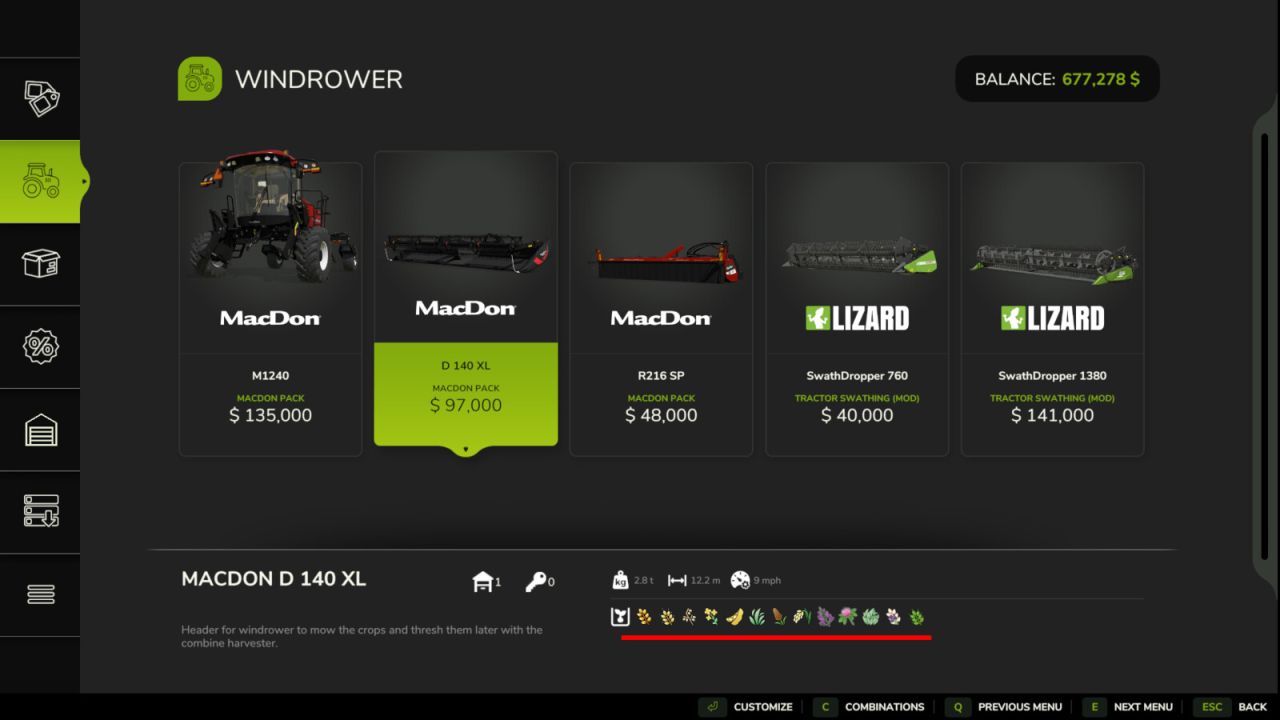 This mod adds additional swathable crops and the ability for swathers to be able to cut grass (and grass alternatives). Swathing Plus is compatible with all swathing headers/equipment including the Macdon pack.