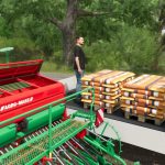A packet of seeds from Polish producer TopNasiona. Contains pallets and bags with various types of seeds.
