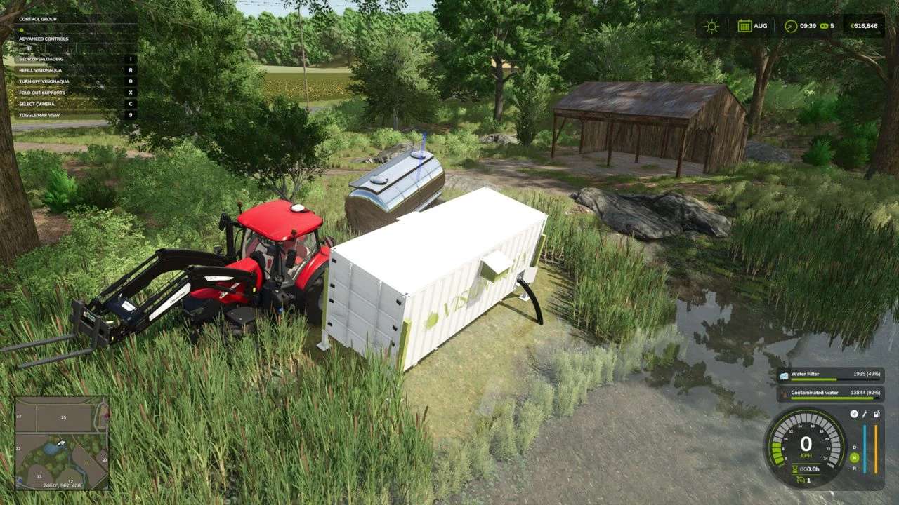 The contaminated water must first be purified with the Vision Aqua container before it can be used in greenhouses/production facilities (which require water) or stables.