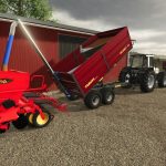This mod offers three capacities from 5.6 m³ to 18.4 m³. On some configurations sides can be opened for bale and pallet loading. You can also choose not to have sides at all, or a handy frame for easy and safe transport for 125 cm round bales. In addition, you can equip the tipper with a filling auger from Jussi-Tuote to make filling the seeder easier and faster. Both seeds and fertilizer can be filled from the same trailer thanks to the partition wall included in the auger package. Other optional accessories include different cover options and a trailer hitch.